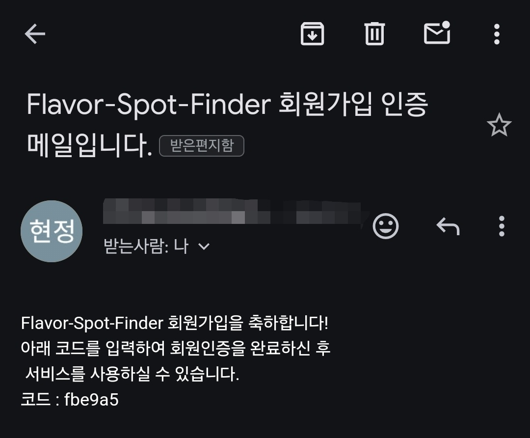 - 목적: 실제로 사용되는 메일인지 확인을 위한 인증 코드를 포함한 메일을 전송합니다.
